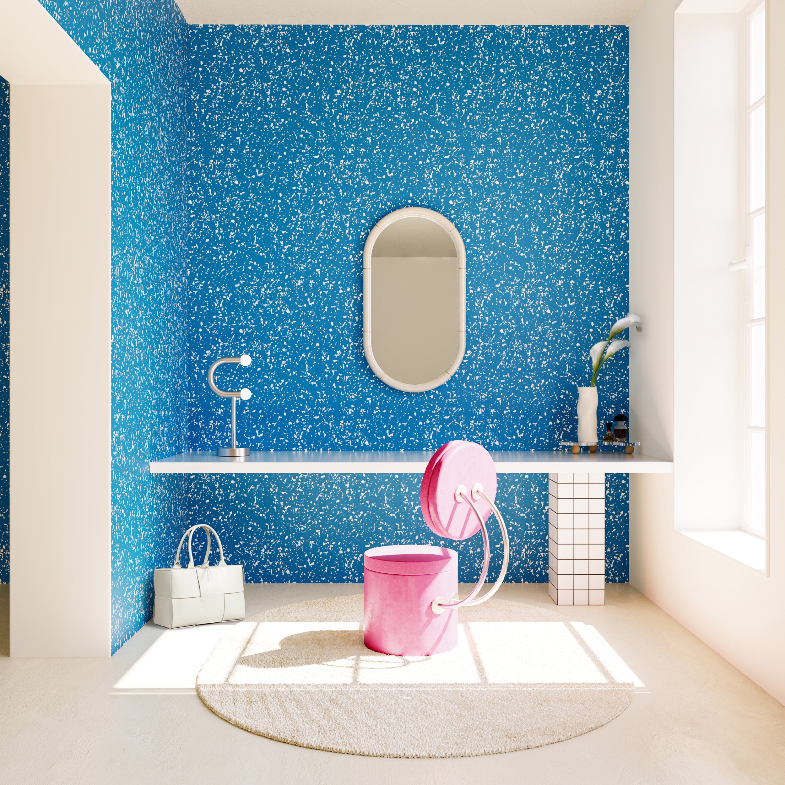 Memphis© Wallpaper in Electric Blue + Cremé
